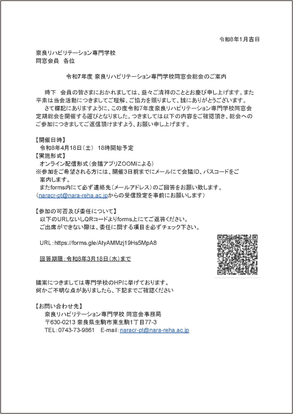 令和7年度奈良リハビリテーション専門学校同窓会 定期総会 議案